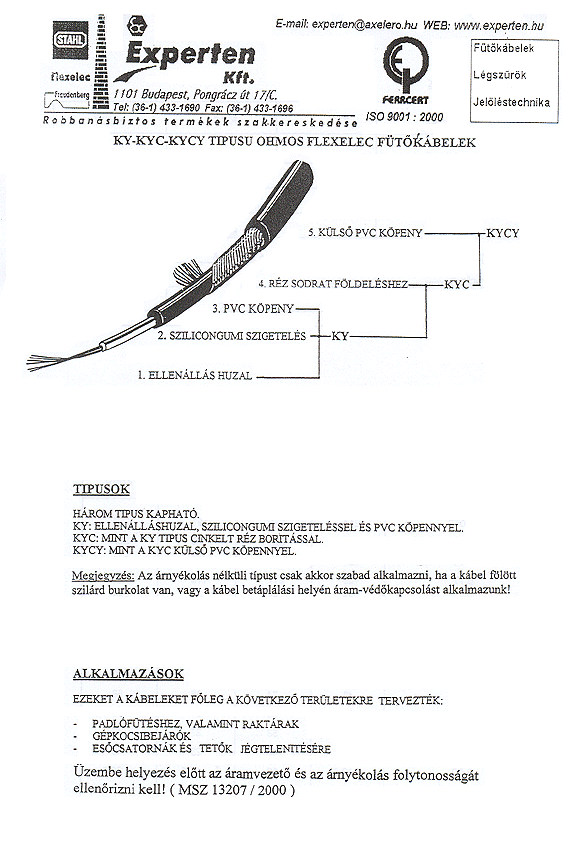 KY-KYC-KYCY típusú ohmos Flexelec fűtőkábelek
